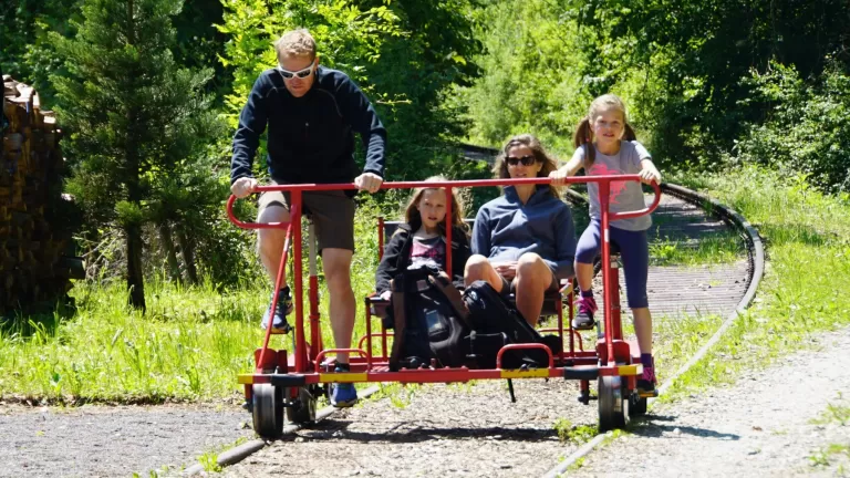 Entdecken Sie aktiv die Natur und die Landschaften des Sense- und Saanetals! Fahren Sie mit der Familie oder den Freunden mit dem Schienenvelo, versuchen Sie Ihr Glück bei einem Spiel und geniesse die "Spaghetteria, 3 Saucen", um das Ganze abzurunden.