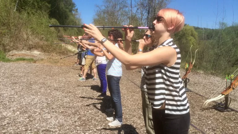 Tu as maintenant l'occasion de l'essayer toi-même ! Après une brève instruction par notre guide, tu pourras tirer toi-même avec la sarbacane. Auparavant, chaque tireur désinfecte lui-même l'embout de sa sarbacane - ainsi, tu es sûr qu'elle a bien été désinfectée.